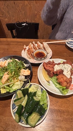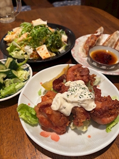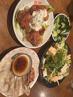 おはよ🦋 きいです👶🏻 昨日ははなちんとみなちんとご飯行ってきたよお🐷🍚 とりからタルタル🐥⸒⸒ 豆腐のサラダ🥗 ギョウザ🥟 美味しかったあ🤤🤤 初めて行ったところだけど 店員さんも丁寧で楽しかったあ👶🏻🎶