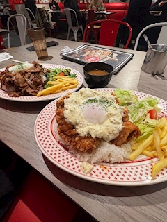 ミナです🦁 ぴっころーん🙂➰🙃 きのーは おともだちと カフェメルス行ってきた😆💓 メニューにチキン南蛮があると 絶対頼んでしまう病にかかってる😅 もう3日連続で チキン南蛮食べてる😂 なんかチキン南蛮ロコモコっていう ご飯の上にチキン南蛮と温玉が乗った メニューあって それにしたら ここ最近で1番おいしかった🤤 でも今日1食目だからーっておもって 調子乗って大盛りにしたら 唐揚げ7個くらい乗ってて 無事しぼう笑笑 ミナ残すの嫌いだから がんばって食べたけど 腹パンすぎて吐きそうでちたとさ😛