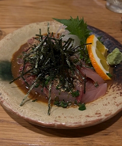 なおです🐶 今日はごまかんぴち🐟 メニューにごまさばと両方あって、めちゃくちゃ迷った🌀 やっぱり魚は好き。