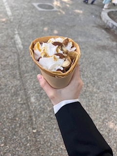 はなです🌸 おやすみもらってます ちょっと前にまたスーツ着た 私のお姉ちゃんスーツのスカート似合うの羨ましい 私はスカートだとちんちくりんだからパンツ派 はんぶんこした なんとなく今お姉ちゃんに会いたい