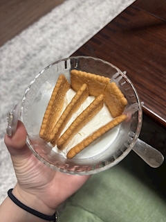 ミナです🦁 ぼぼぼぼぼ🔥❤️🔥 きょーは 最近TikTokで見た ヨーグルトに ハーベスト刺して チーズケーキ風に アレンジするやつやってみた🧀🍰 いきなり ヨーグルト全部でやるのは ちょっと怖かったから お皿にちょっとだけ盛って やってみた!! ヨーグルトだけだと ちょっと酸味が強くて おいしくなかたから はちみつ入れたら いい感じだた!😋💗 みんなも作ってみてねん❣️
