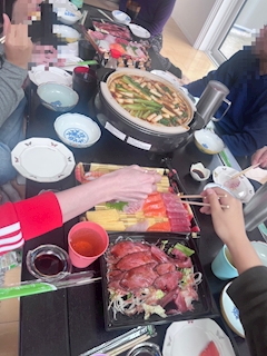 ミナです🦁 ちゃぽーん🩵🪽 きのーは疲れすぎて 19時くらいまで 寝ちゃった😴💦 21時くらいから友だちんちで 集まって すき焼きパーティしたよー! 最近毎日 すき焼き食べてる気がする😅 ダイエットは明日から やろーっと😛💓 なんか友だちが ローストビーフで お花作ってくれて めっちゃおしゃだった😳✨ ミナもそういう おしゃれ料理作れるように なりたいなー!😚🎶 なんかミナもうすぐ 一人暮らしするかもだから 料理の練習しよっと✊🏻💞