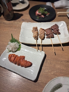 こんばんはーー🖤ここです🎀🪽 きのうはご飯つれてってくれてありがとうーーー🩷🩷 ひさしぶりの焼き鳥おいしすぎ、た🙂↕️🎶 でざーとも全部おいしそうすぎてなやんでたら全部たのんでくれた😂 これいちばんおいひかた🫠🎶 きょ21じからいまつ(ᐡ. ̫ .ᐡ )🎶きてねー ここ