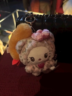 やほーー🖤ここだよ🎀🪽 きのう、ゆいちゃんがえびふらいのキーホルダーくれたの🍤🩷 なんか、ひっぱったら振動しながら元に戻るの😂 魅力的すぎてずっと引っ張ってあそんでたよ🙂↕️🩷 お店でつかってるバッグにゆいちゃんとおそろちのキティちゃん🎀つけてるけど えびふらいさんも仲間入りしたよ🫢🖤⟡.· きてぃちゃんとえびふらいさん ちょうかわいいから見に来てねん💧🫠 きょは21じ~いましゅ💞😕 ここ